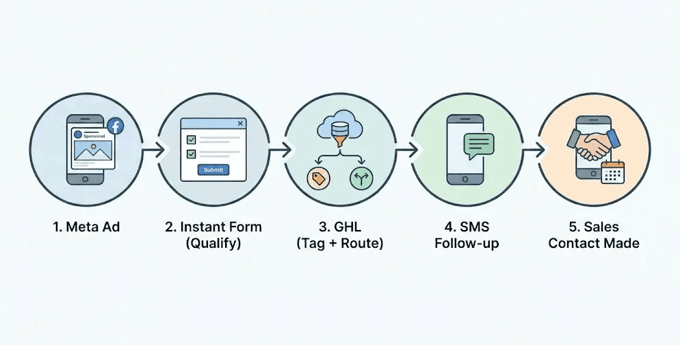 I built a full-funnel Meta to CRM pipeline that qualifies early and triggers immediate follow-up, so leads consistently move from form fill to booked appointment.